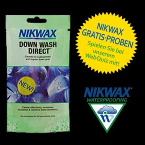 Ich wollte mal wieder auf den altbekannten Nikwax-Deal aufmerksam machen, denn ich habe ihn z.B. die letzten Monate total vergessen… Also, zur Zeit könnt ihr eine kostenlose 100 ml-Probe eines Waschmittels für Daunenwäsche erhalten (Nikwax Down Wash Direct). Ihr müsst dafür in einem Quiz mit 5 Fragen alle 5 Fragen richtig beantworten. Sollte Euch das nicht gelungen sein, so könnt ihr es immer wieder aufs Neue versuchen. Ich habe hier mal ein paar Antworten auf gestellte Fragen aufgelistet, allerdings scheint Nikwax extrem viele Fragen auf Lager zu haben ?