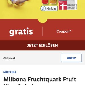 Ich weiß, es kauft kaum jemand bei Lidl für 35€ ein aber falls Monsterh erhaltet Ihr heute und morgen zum Weltkindertag einen Milbona Fruchtquark Fruit King Safari (12x60g) gratis zum Einkauf dazu.