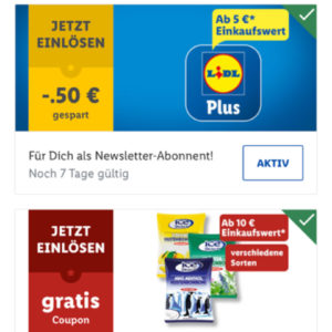 Als Lidl Plus App Newsletter Abonnent schaut bitte in eueren E-Mails nach. Ich hatte heute eine E-Mail bekommen, wo ein Link zum Coupon 0,50€ ab Mindesteinkaufswert 5€ drin steht.