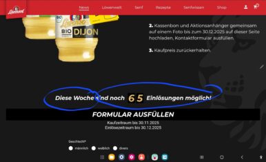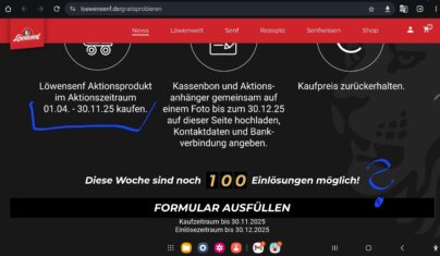 Jetzt habt ihr die Chance, Löwensenf kostenlos zu probieren! Kauft einfach eines der Aktionsprodukte mit Sticker, ladet euren Kassenbon hoch und erhaltet den Kaufpreis zurück.