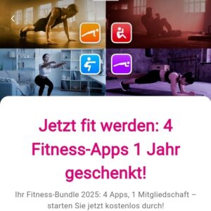 Ab sofort könnt ihr in der Telekom Magenta App einen Vorteil für 4 Fitness-Apps freischalten, die ihr ein Jahr geschenkt bekommt.