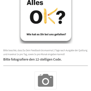 Hier kann man bis zu 5x im Monat seinen Besuch bei McDonald’s bewerten und bekommt entweder 0,25l Cola /1kleine Pommes oder 1kleines Eis für 50cent als Belohnung pro bewertung.aber trotzdem Achtung man muss nach seinem Besuch bis 48h danach seinen Besuch nach dem Kassenbon bewertet haben. Garantiert .