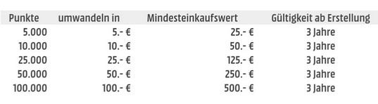 Dank den Punkten könnt ihr Gutscheine anfordern und so z.B. 5€ (MBW 25€) für die 5000 Punkte erhalten.