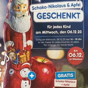 Netto verschenkt aus diesem Anlass an jedes Kind einen Schoko-Nikolaus und einen Apfel.