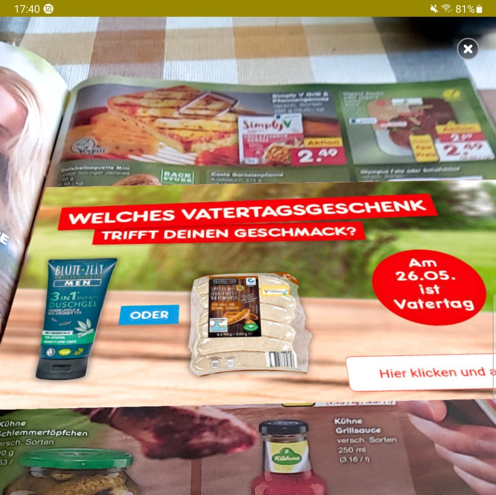 Wer im Prospekt (gültig ab 23.05.) die Seite 11 mit der Netto-App scannt, kann einen Coupon auswählen, mit dem er einen Artikel (was es gibt, ist noch nicht bekannt) gratis bekommt – passend zum Vatertag.