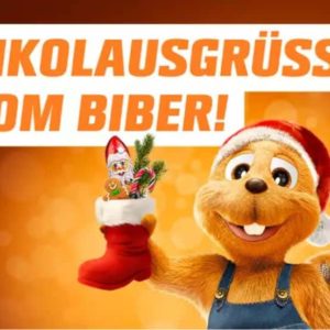 Nikolaus Grüße vom OBI Biber – gratis gefüllter Stiefel