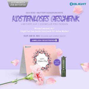Diese Woche ist Muttertag. Hast du ein Geschenk für deine Mutter vorbereitet? Olight hat jetzt ein kostenloses Muttertagsgeschenk für deine Mutter. Registriere dich als Neukunde oder log dich in deinem Kundenkonto ein. Dann kannst du ein kostenloses I3UV und eine schöne Karte erhalten.