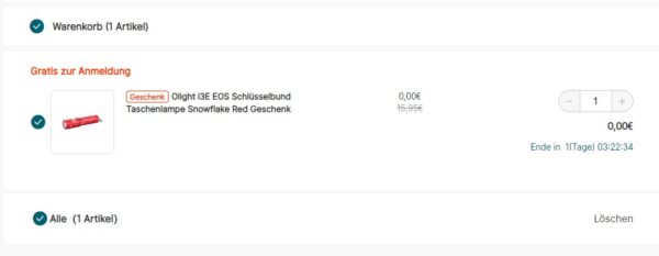 Von Olight gibt es dieses Jahr auch wieder eine tolles Willkommensgeschenk , die i3E EOS Schlüsselbund Taschenlampe.
