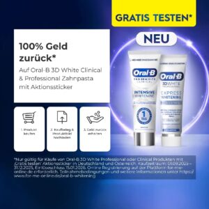 Beim Kauf einer Oral-B 3D White Clinical & Professional Zahnpasta mit Aktionssticker bekommt ihr den vollen Kaufpreis zurückerstattet.