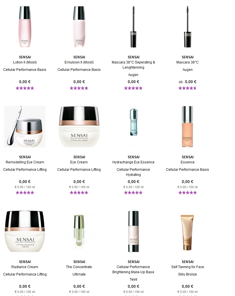 Preisfehler! parfuemerie-pieper.de Sensai Produckte Luxus Pflege und Make-Up!