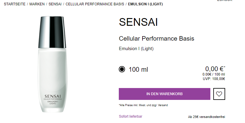 Preisfehler! parfuemerie-pieper Sensai Produckte