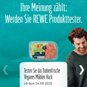 Aktuell gibt es einen neuen Produkttest bei Rewe. Die 189 g Schale veganes Mühlen Hack. Bewerben kann man sich bis zum 13.09.2020