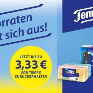 Es gibt eine neue Tempo Aktion, beim zeitgleichen Kauf von einem Tempo Taschentücher Päckchen und einer Tempo Box.