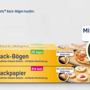 - Toppits Backpapier oder Back-Bögen zwischen dem 27.09. und 31.12.2022 im stationären Handel kaufen.