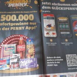 Ab 19.09.2022 beginnt wieder der Glückspenny bei Penny. Einfach App runterladen, täglich die Slotmaschine starten und gratis Produkte gewinnen. Die Gratiscoupons gelten dann 3 Werktage. Viel Erfolg
