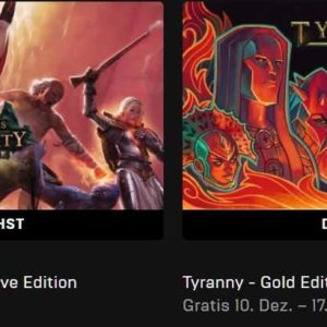 Vorankündigung GRATIS 2 Spiele „Pillars of Eternity – Definitive Edition“ + “ Tyranny – Gold Edition“ + 19 weitere Spiele im Epic-Games-Store vom 10.12.20 17:00 Uhr bis 17.12.2020 16:59 Uhr