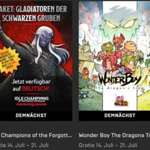 Vorankündigung GRATIS 2 Spiele „Wonder Boy: The Dragon’s Trap“ + „Idle Champions of the Forgotten Realms“ im Epic-Games-Store vom 14.07.22 17:00 Uhr bis 21.07.22 16:59 Uhr + weitere Spiele