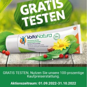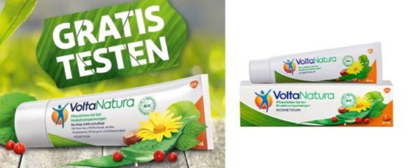 Seit dem 1. September könnt ihr nun bis einschließlich 31.10.2022 das neue VoltaNatura 50ml GRATIS testen. Die Übermittlung der Daten muss hierbei bis einschließlich 15.11.2022 stattgefunden haben. Das pflanzliche Gel wirkt bspw. gegen Muskelverspannungen. Laut Hersteller soll das Gel besonders schnell einziehen und verspannte Muskeln beruhigen. Ob das Gel hält, was es verspricht, könnt ihr dank der aktuellen Geld-zurück-Aktion jetzt selbst testen.