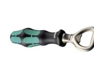 - Flaschenöffner mit original Wera Kraftform Griff und mattverchromter Klinge.