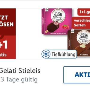 Ab heute gibt es zu einer 6er Packung Stieleis Gelati bei Lidl eine gratis Packung dazu.