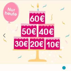 *Der 10€-Aktionsgutschein CAKE18354 gilt ab einem Mindesteinkaufswert nach Retouren von 80€, der 20€-Aktionsgutschein CAKE27985 gilt ab einem Mindesteinkaufswert nach Retouren von 160€, der 30€-Aktionsgutschein CAKE36661 gilt ab einem Mindesteinkaufswert nach Retouren von 240€, der 40€-Aktionsgutschein CAKE48717 gilt ab einem Mindesteinkaufswert nach Retouren von 320€, der 50€-Aktionsgutschein CAKE56413 gilt ab einem Mindesteinkaufswert nach Retouren von 400€ und der 60€-Aktionsgutschein CAKE69048 gilt ab einem Mindesteinkaufswert nach Retouren von 480€. Die Aktionsgutscheine sind nur am 25.10.2020 einmalig einlösbar. Wird der Mindesteinkaufswert nach (Teil-)Warenretouren unterschritten, berechnen wir den ursprünglichen vollen Preis der Waren, die du behältst. Ausgeschlossen sind einzelne Produkte der Kategorie ‚Milchnahrung‘ sowie Geschenkgutscheine, Bücher und Artikel einzelner Hersteller. Barauszahlung oder Kombination mit anderen Rabattaktionen ist nicht möglich. Bei Verwendung des Aktionsgutscheins gelten unsere AGB, hier insbesondere Ziff. 5.