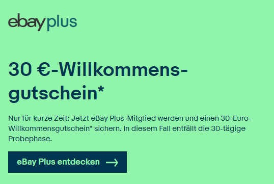 - Jetzt für 19,90 € jährlich eBay Plus Mitglied werden und einen 30 € Willkommens-Gutschein für Ihren nächsten Einkauf abholen! Mehr