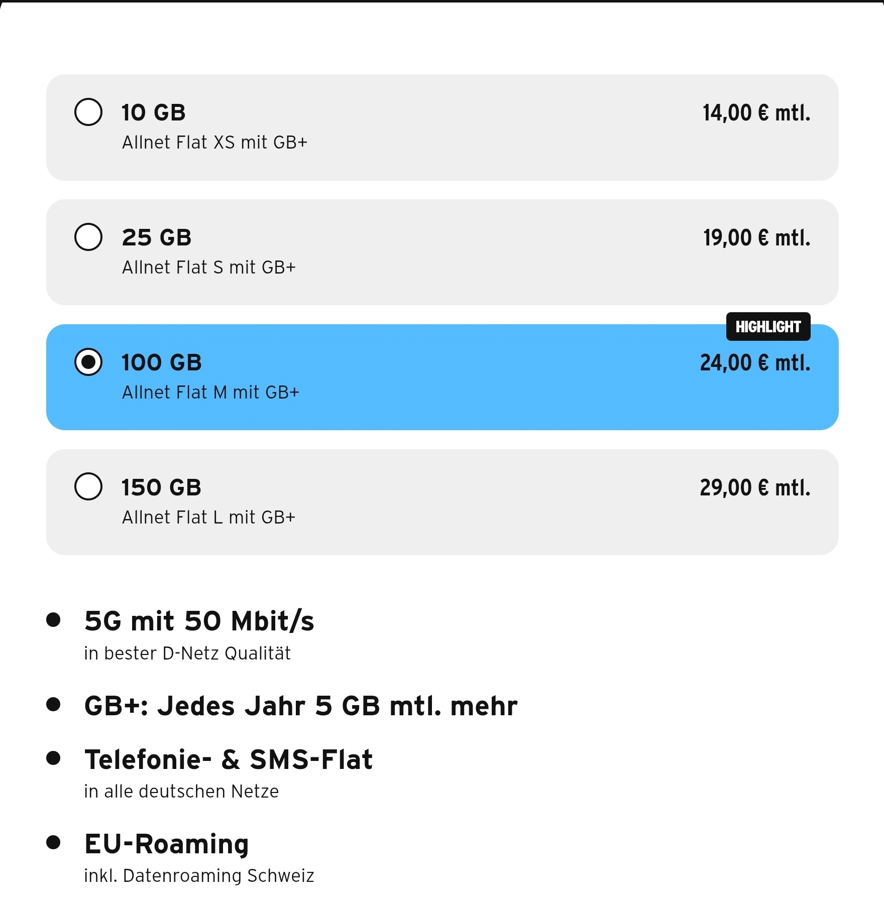 - 50GB Datenvolumen inkl. 5G mit max. 100 Mbit/s
