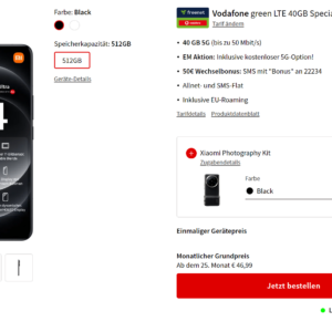 Aktuell bekommt Ihr das Xiaomi 14 Ultra 5G mit 512GB bei Mediamarkt im Tarif Vodafone green LTE 40GB Special für 49,-€ incl. dem Xiaomi Photography Kit und der EM Aktion: Inklusive kostenloser 5G-Option!
