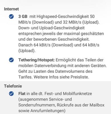 - 👉 nach Verbrauch des Datenvolumens Drosselung auf bis zu 64 kBit/s
