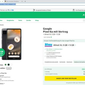 Im Curved-Shop bekommt Ihr aktuell das Google Pixel 6a mit der Blau Allnet Flat mit 5 GB Datenvolumen + 5 GB extra Datenvolumen für 19,99€/Monat und 0€ Anschlusspreis.