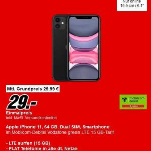 das iPhone 11 für 29,00€ einmalig und 29,99€ monatlich. Dazu kommen noch 39,99€ Anschlusskosten.