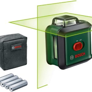 Bosch Kreuzlinienlaser UniversalLevel 360 (grüner Laser, Arbeitsbereich: bis zu 24 m, Genauigkeit: ± 0,4 mm/m, selbstnivellierend: bis ± 4°, 4x AA-Batterien, im Karton)