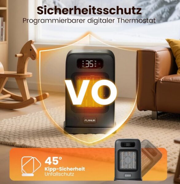 - Starke Heizleistung: Dieser energiesparende Heizlüfter FLANUR 26 cm ist mit fortschrittlicher PTC-Heiztechnik ausgestattet. Er bietet eine starke Leistung von 1500 Watt und kann die Temperatur innerhalb von Sekunden erhöhen. Dieser Elektroheizlüfter eignet sich hervorragend für Büros oder Schlafzimmer und erfüllt die Heizbedürfnisse in allen Jahreszeiten