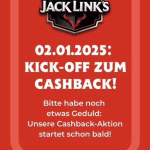 Vom 02.01.25 bis 15.02.25 (oder wenn die Teilnehmerzahl von 20000 erreicht ist) gibt es 1,50 € Cashback auf eine Packung Jack Link‘s Beef Jerky.