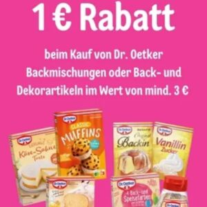 Jetzt gibt es die Gelegenheit, sich einen 1€ Sofort-Rabatt von Dr. Oetker Backmischungen oder Back- und Dekorartikel im Wert von mindestens 3€ zu sichern.