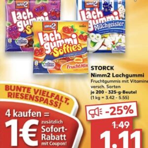 Diese Woche gibt es im Kaufland Prospekt einen ein Euro Rabatt Gutschein beim Kauf von vier Packungen Lachgummis.