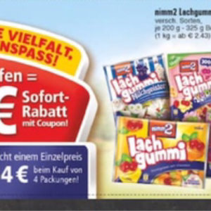 Edeka hat im Prospekt diese Woche einen Lachgummi von nimm 2 Rabattgutschein: