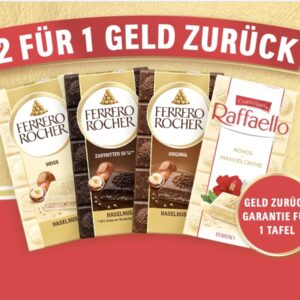 2 für 1 Deal – Ferrero Rocher Tafel – 2 Stück kaufen und für die günstigere Tafel das Geld zurück erhalten – ab 17.02.25
