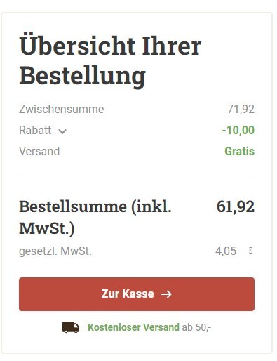 Zusätzlich kann man ab bestimmten Bestellmenge rabattgutscheine einlösen