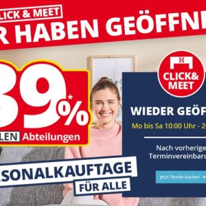 *39%* Rabatt in *allen Abteilungen* bei den „Personalkauftagen für Alle“ bei Höffner