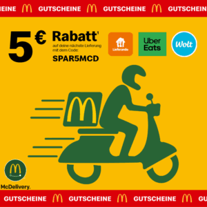Sichere dir jetzt 5âŻâŹ Rabatt auf deine nĂ€chste McDonald’s Bestellung â ganz einfach ĂŒber die App oder Website folgender Lieferdienste:
