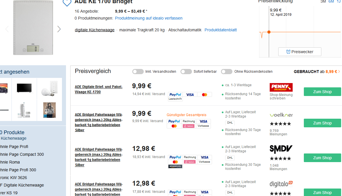 Bei Voelkner bekommt man den ADE Bridget Paketwaage Wägebereich (max.) 20kg Ablesbarkeit 1g batteriebetrieben Silber für 9,99 statt PVG ab 14,94 Euro inkl.Versand.