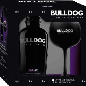 Bulldog Gin Giftbox – jedes Pack inklusive eines exklusiven Bulldog Copa Glas in schwarz. BULLDOG Gin besticht durch seine einzigartige, pechschwarze Flaschenausstattung sowie durch seinen starken und merkfähigen Markennamen. Die Aussage „BULLDOG – the smoothest and most mixable gin in the world“ beschreibt seinen besonders ausgewogenen Geschmack in idealer Weise.