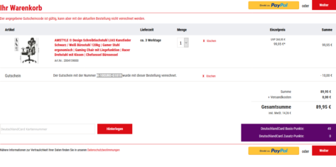 Bei Netto Online bekommt man derzeit die AMSTYLE Design Schreibtischstuhl LIAS Kunstleder Schwarz / Weiß Bürostuhl 120kg | Gamer Stuhl ergonomisch | Gaming Chair mit Liegefunktion | Racer Drehstuhl mit Kissen | Chefsessel Bürosessel für 89,95 statt 165,93 Euro inkl.versand. (Gutscheincode: N-10EURO-G1019)