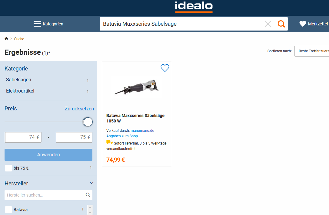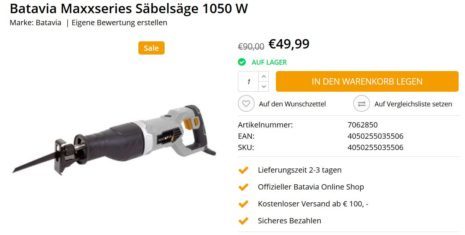 diki 25.07.2020, 09:22 #Dein Vergleichspreis stimmt nicht…im Batavia.Store.com ist die Säge für 49,99€ zzgl. 6,95€ Versandkosten zu haben.