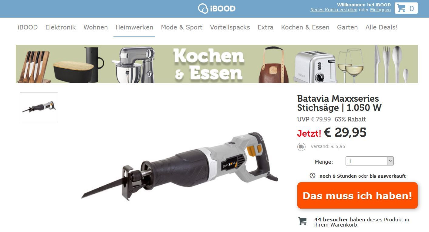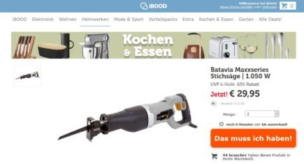 Bei ibood als Tagesangebot bekommt man die Batavia Maxxseries Säbelsäge 1.050 W für 35,90€ statt PVG ab 57€ inkl.Versand