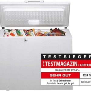 Die Bauknecht GTE 220 A3+ hat bei Amazon gute 4,5 Sterne bei 425 Bewertungen und auch bei anderen Anbietern bewerten Kunden das Gerät überwiegend mit gut bis sehr gut. Bei Tests hat die Bauknecht GTE 220 Gefriertruhe ebenfalls mit guten Noten abgeschnitten.