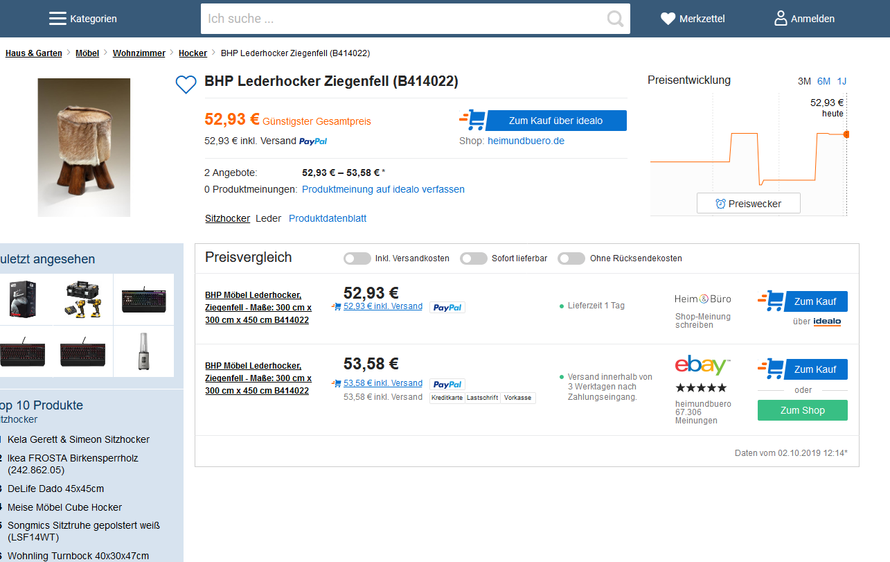 BHP Möbel Lederhocker, Ziegenfell 19,97 inkl.Versand