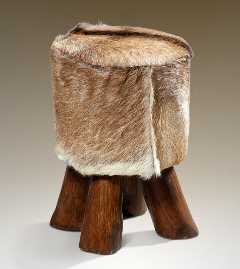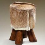 - Produktbeschreibung Lederhocker 4 Füße, Ziegenfell, Akazienholz