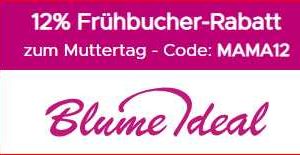 Bei Blume Ideal bekommt man aktuell 12% Frühbucher-Rabatt zum Muttertag mit dem Gutscheincode MAMA12